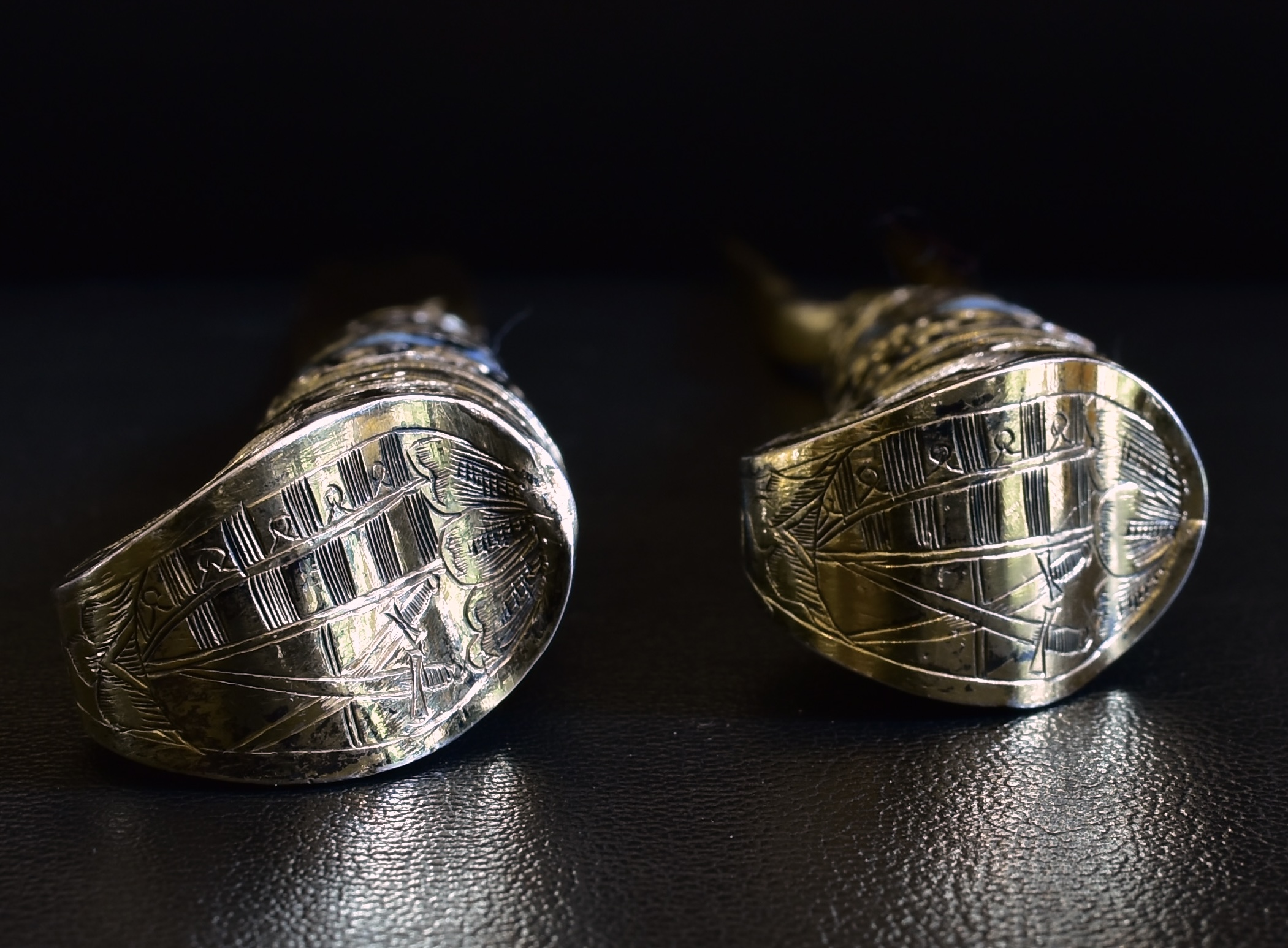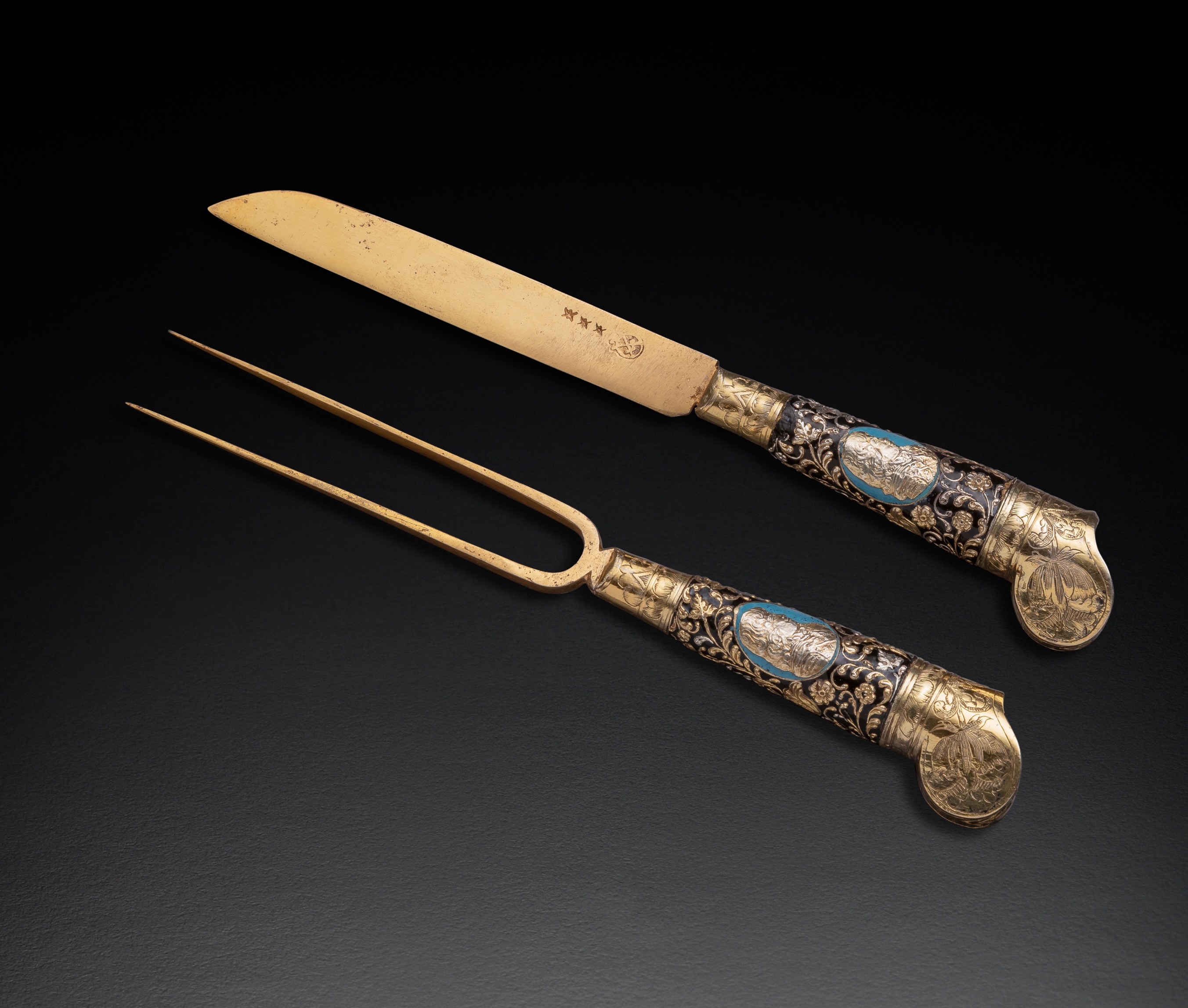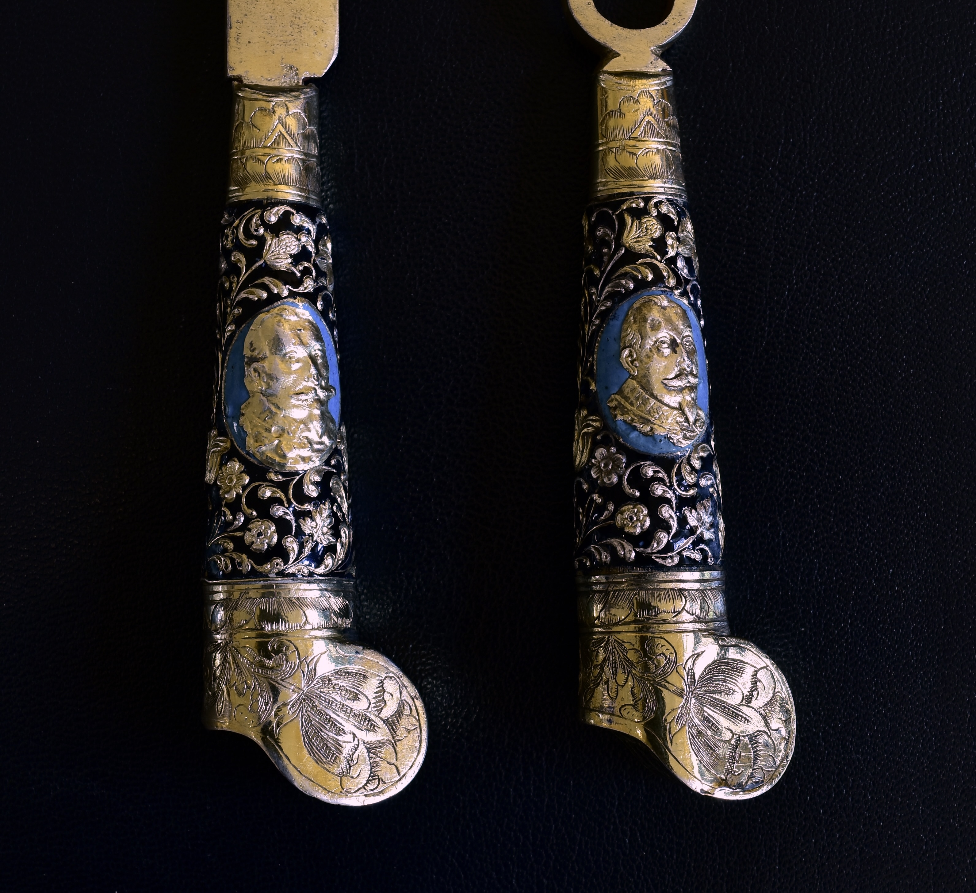 Saxon and Brandenburg coats of arms and medallion portrait of King Gustav II of Sweden on the handles